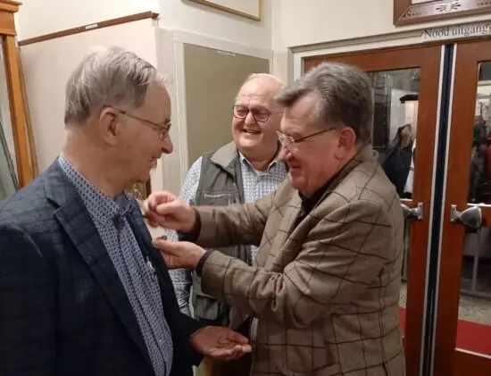 Aan de voormalige bestuursleden Has Hendriks en Jacques Brouwer van Heemkundekring Uden is het draaginsigne van Brabants Heem uitgereikt. Voorzitter Henk Hellegers van Brabants Heem speldde de draaginsignes op tijdens de Nieuwjaarsbijeenkomst van de heemkundekring.