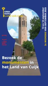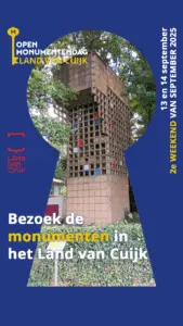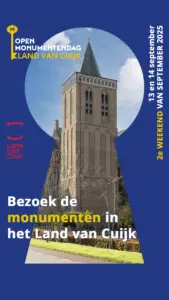 Vereniging Historische Kring Land van Cuijk meldt de activiteiten tijdens het Brabants Erfgoedweekend/Open Monumentendagen aan voor de stimuleringsprijs Brabants Erfgoedweekend.