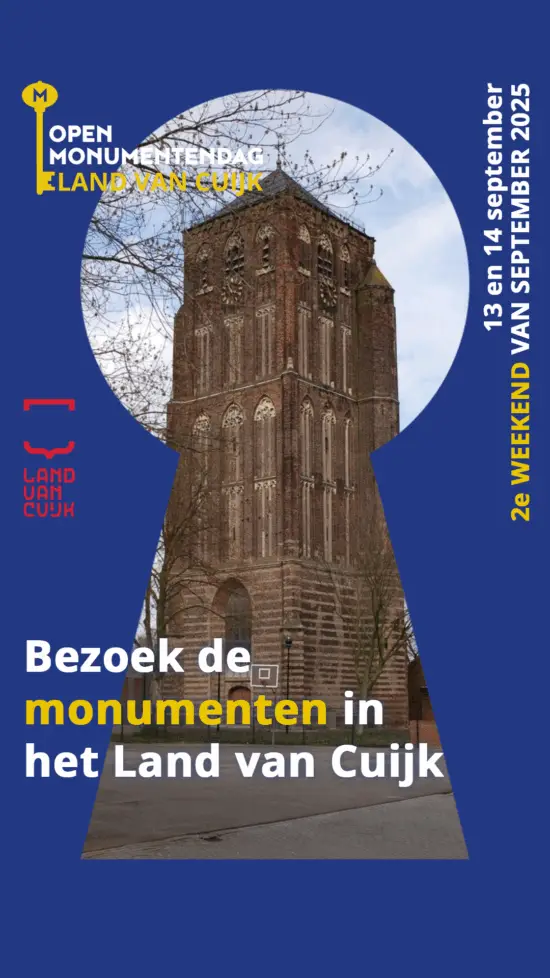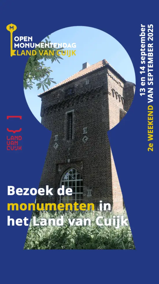 Vereniging Historische Kring Land van Cuijk meldt de activiteiten tijdens het Brabants Erfgoedweekend/Open Monumentendagen aan voor de stimuleringsprijs Brabants Erfgoedweekend.