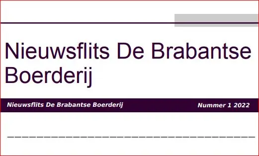 Stichting De Brabantse Boerderij heeft haar eerste Nieuwflits uitgegeven. Daarin krijgen de Vrienden van de stichting informatie over activiteiten en werkzaamheden van de stichting.
