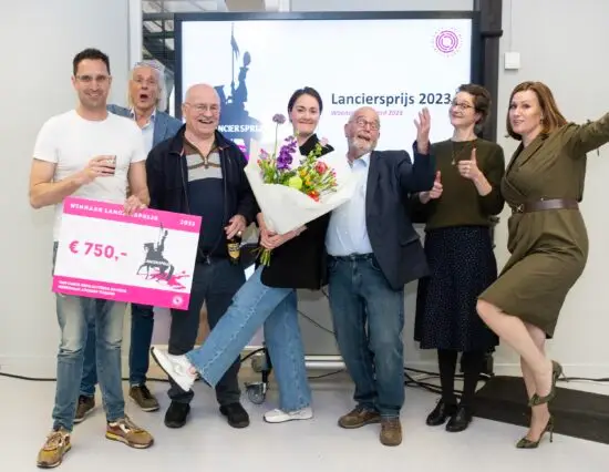 Foto: Genomineerden en jury Lanciersprijs 2023. Links de winnaar Alex van Dongen. (foto Maria van der Heyden)